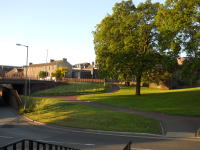 | この場所に最初に目を付けたのがケルト人で、カール・ルエル(丘の砦)と呼んでいた。これがカーライルの町の由来である。 ローマ人の砦もあるが、現在の城を築いたのは1092年。 エデン川が城を取り巻く様に、キャスル・ウエイ(A595)がそれを蓋をするような形になっている。城の周りは青い芝に囲まれている。 カーライル大聖堂方面から城に行くにはこのキャッスル・ウエイを横断しなくてはならないが、地下道が出来ていて車に心配することなく渡れる。 また、この地下道にも色々な展示がなされている。 |