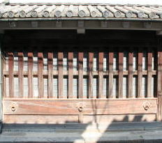 | 東南に向かって見た壁。防火のために厚い壁となっている。 |