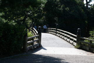| 京都御苑内の九条池(勾玉池)の中ノ島に厳島神社がある。 社殿前の破風形鳥居は京都三大鳥居の一つに数えられている。 市杵島姫命⇒⇒⇒ |