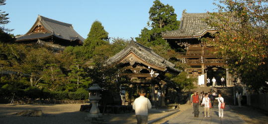 | 大門(重文) 三間楼門。 宝永4年(1706)の建立。総欅造り。 金剛力士は仏師春日の作と云われ、像の用材は桂。 |