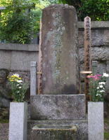 | 伊藤若冲の墓 (1716〜1800) 若冲の墓は、本堂の南側にある。墓石には「斗米庵若冲居士墓」晩年の 若冲が生活ののために、絵一枚を米一斗と交換していたことに由来する。 |