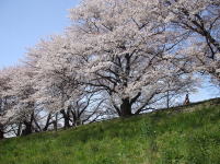 | 宇治川と木津川を分ける京都府八幡市の淀川河川公園は、 約1.3kmの堤防の両側に、二百数十本のソメイヨシノ桜が咲く。 |