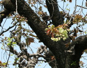 | 根元から花をつける歓喜桜 | 珍しい緑色(御衣黄・ ぎょいこう))の桜 |