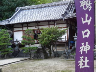 葛城山麓の扇状地、櫛羅大湊に位置する本社は、古くから朝廷に皇居の用材を献上 する山口祭を司どった由緒深い神社であります。祭神は、大山祇神、大日霊命(おおひ 『延喜式神名帳』には、山口社は十四社あるが、その内、葛上郡の鴨山口神社が本 社であるとされており、即ち式内の大社として格式の高い神社であります。 本殿は、春日造桧皮羊(八尺に七尺)であり、拝殿は、瓦葺(五間に二間)であり、本 殿に安置されている大日霊貴命坐像(おおひるめのむち)、御霊大神坐像は国の重要 |